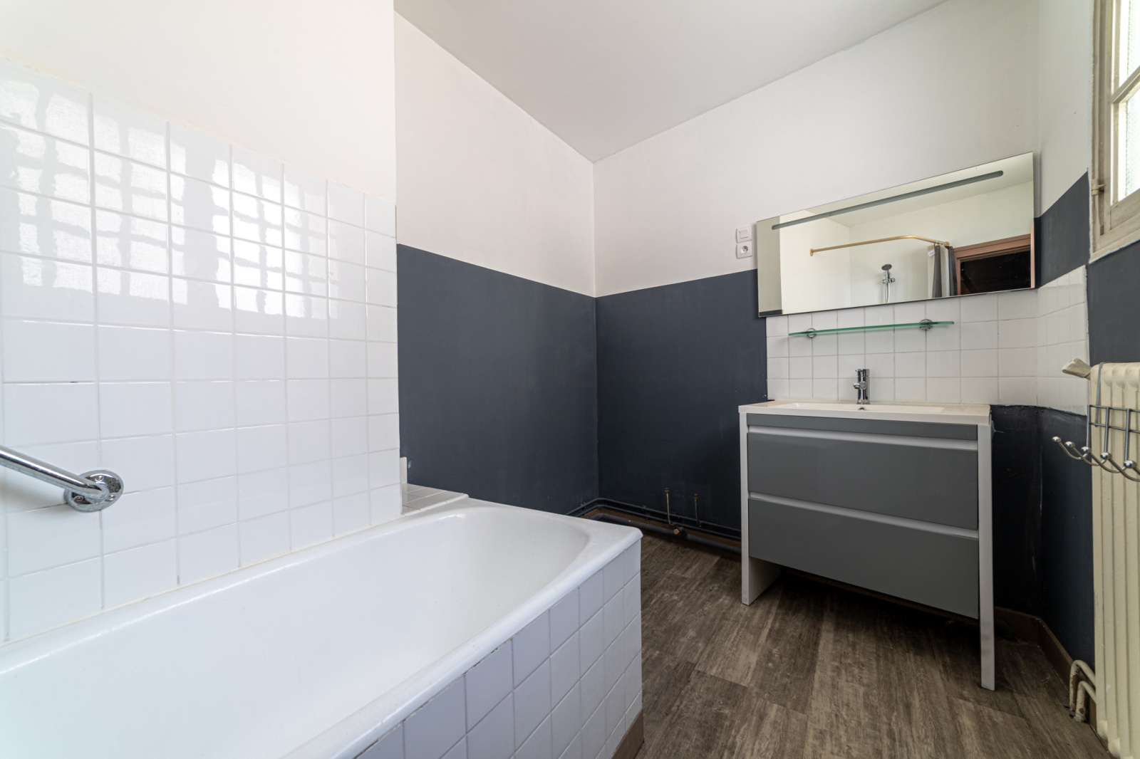 A l'étage : un appartement en duplex de 69m² comprenant : un salon, une cuisine, une salle de bain, WC, deux chambres, un balcon et une petite terrasse.