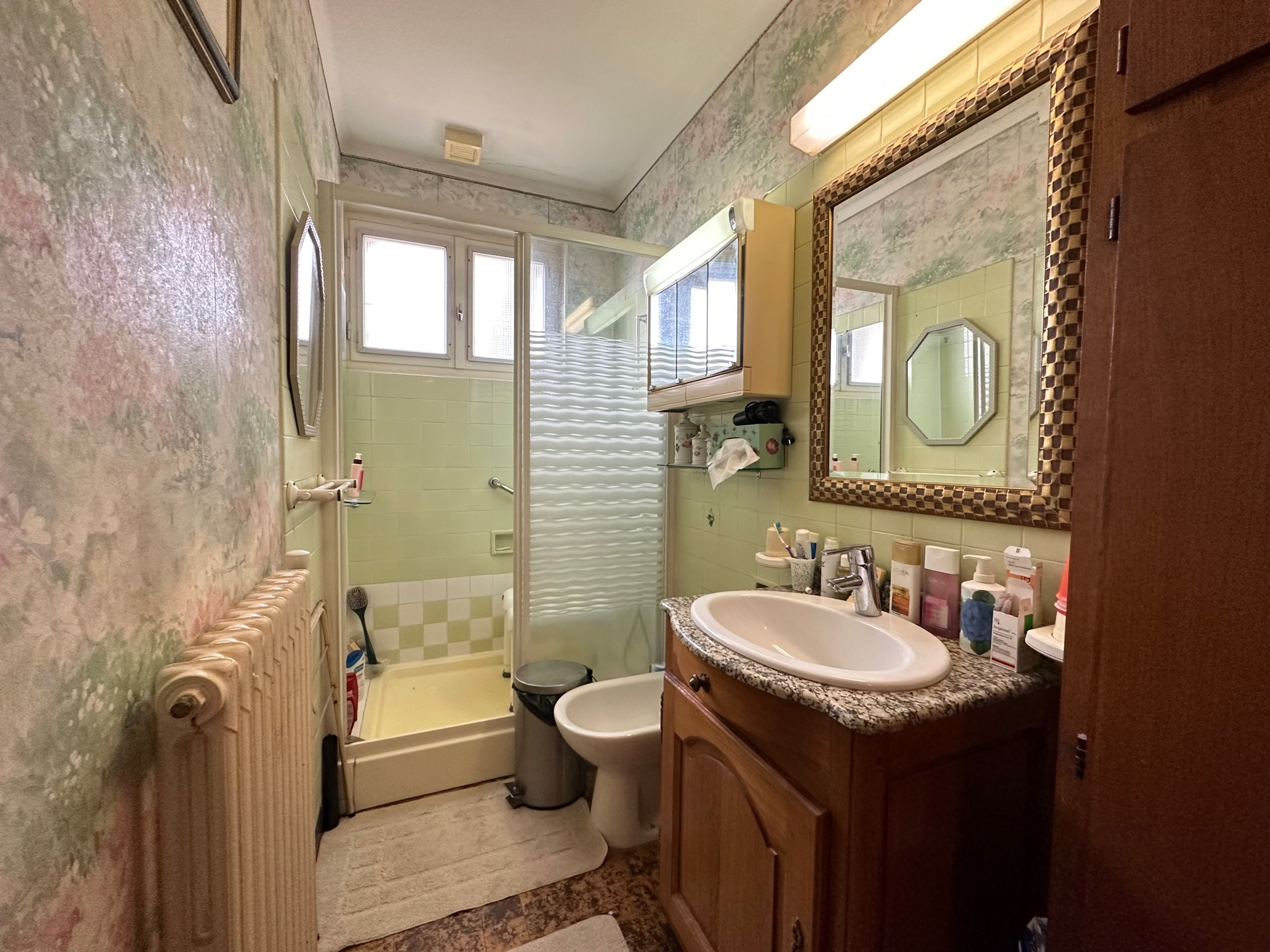 Au rez-de-jardin : une vaste pièce d'environ 30m2, une chambre avec point d'eau, une buanderie, une chaufferie, un wc et cave.