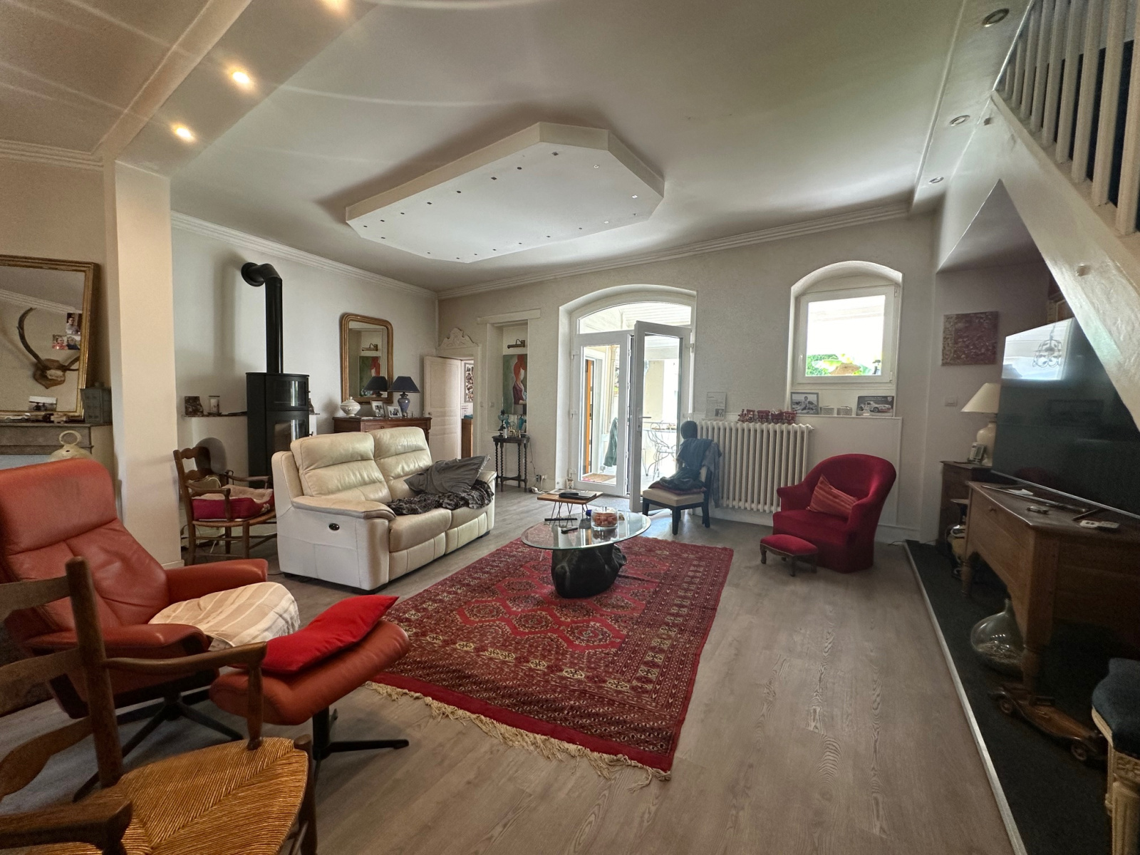Au rez-de-chaussée : une entrée indépendante, un double séjour (53m2) avec un poêle à bois de très bonne qualité, une salle à manger. Dans l'extension, vous profiterez de la cuisine aménagée et équipée, d'une chambre ainsi qu'une salle de bains avec wc.