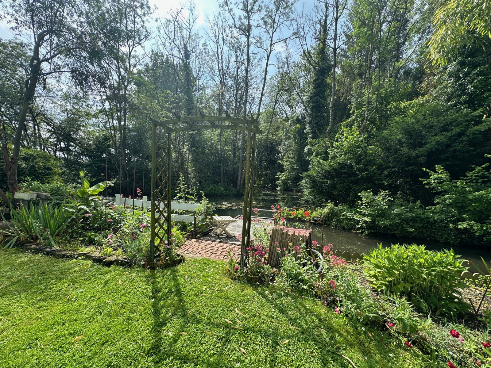 Vous profiterez d'une grande terrasse couverte, d'un grand jardin paysager avec la rivière en contrebas, de plusieurs dépendances.