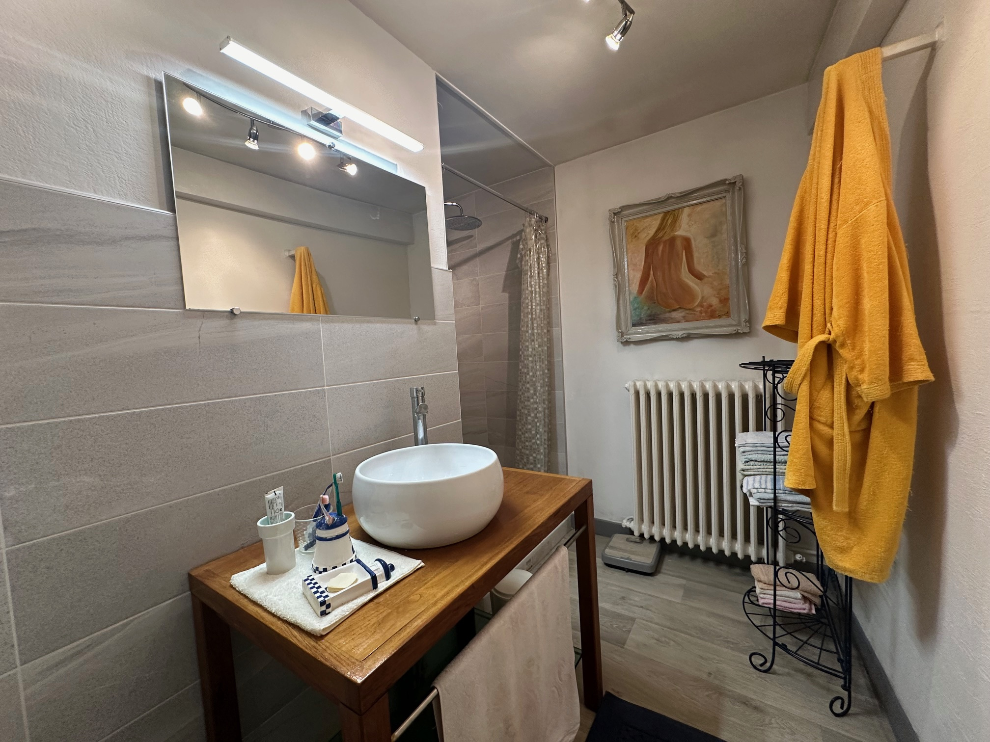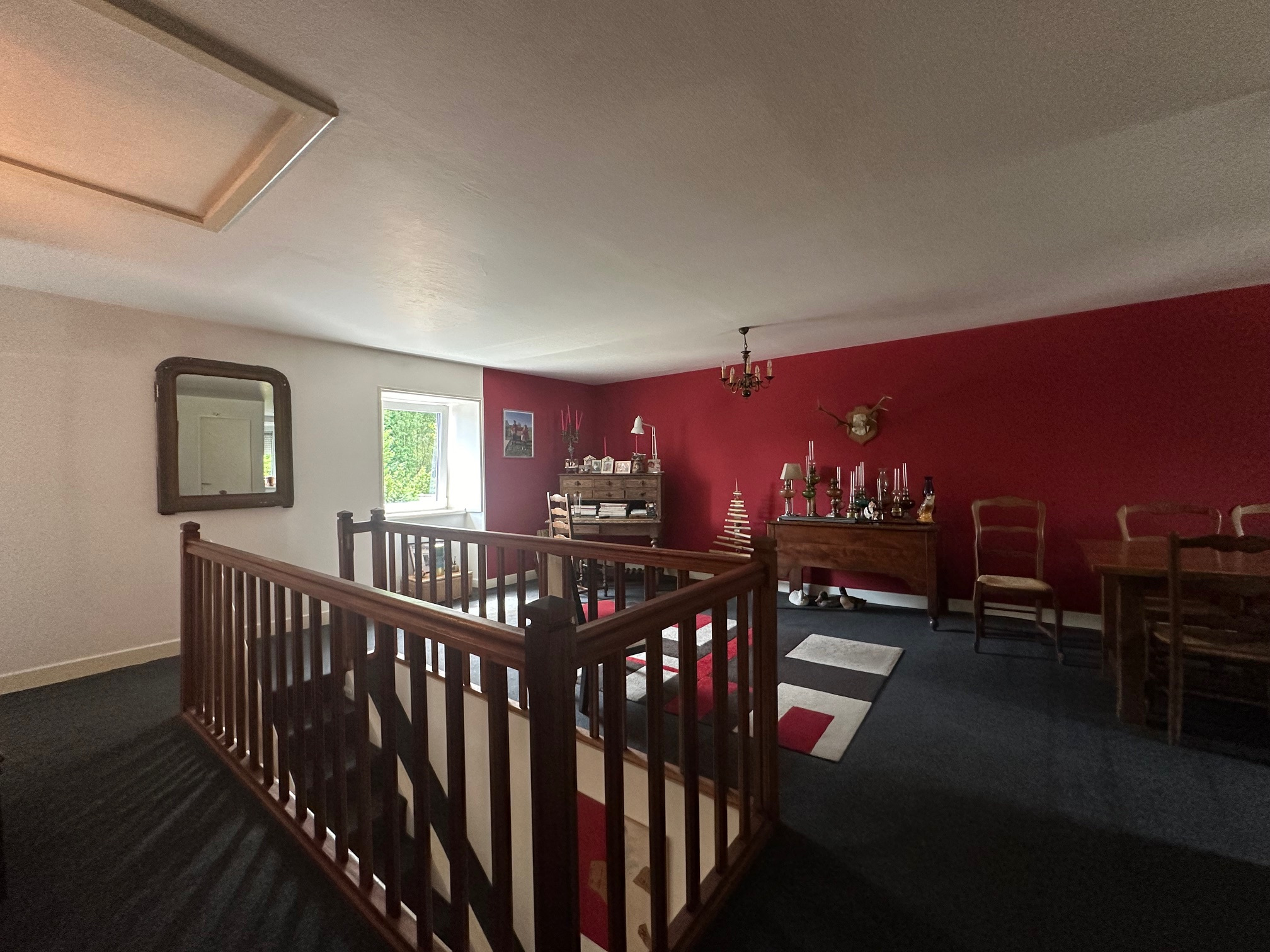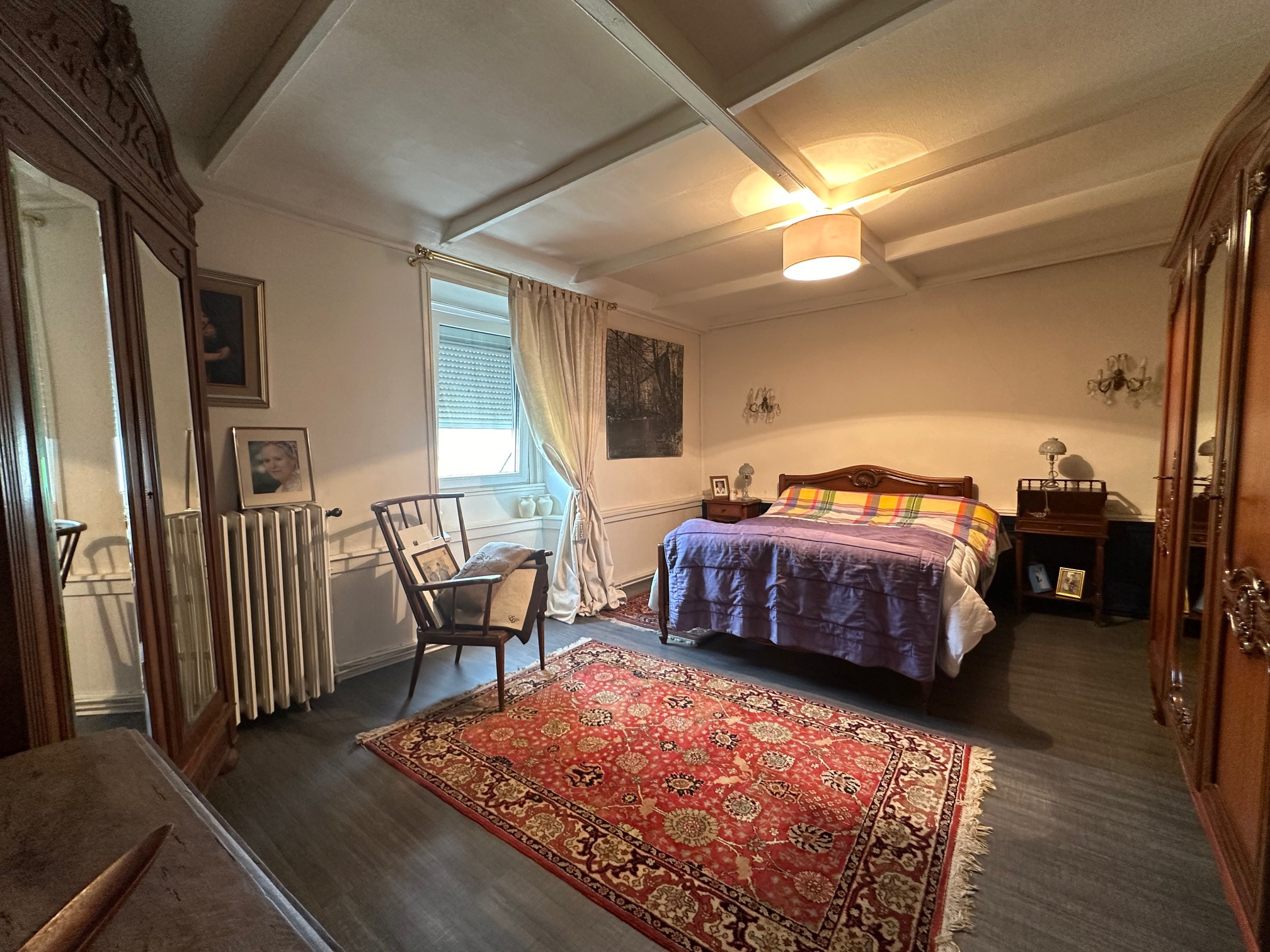 A l'étage : une grande pièce palière desservant deux vastes chambres, une salle d'eau et wc séparés.