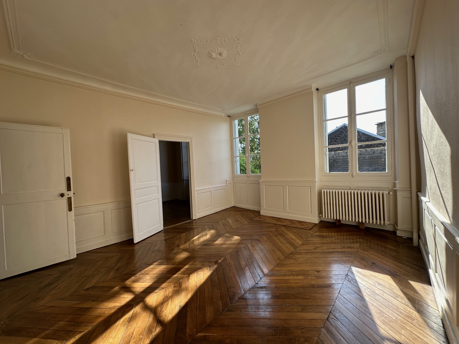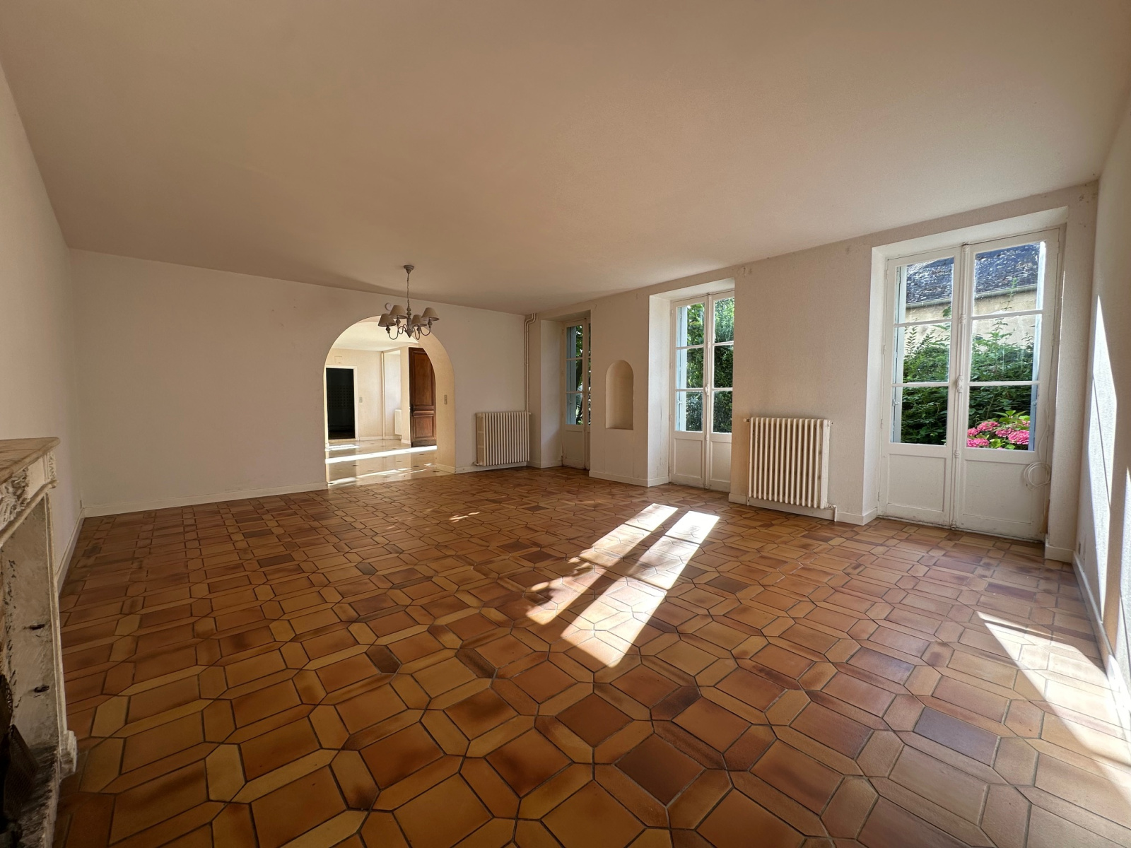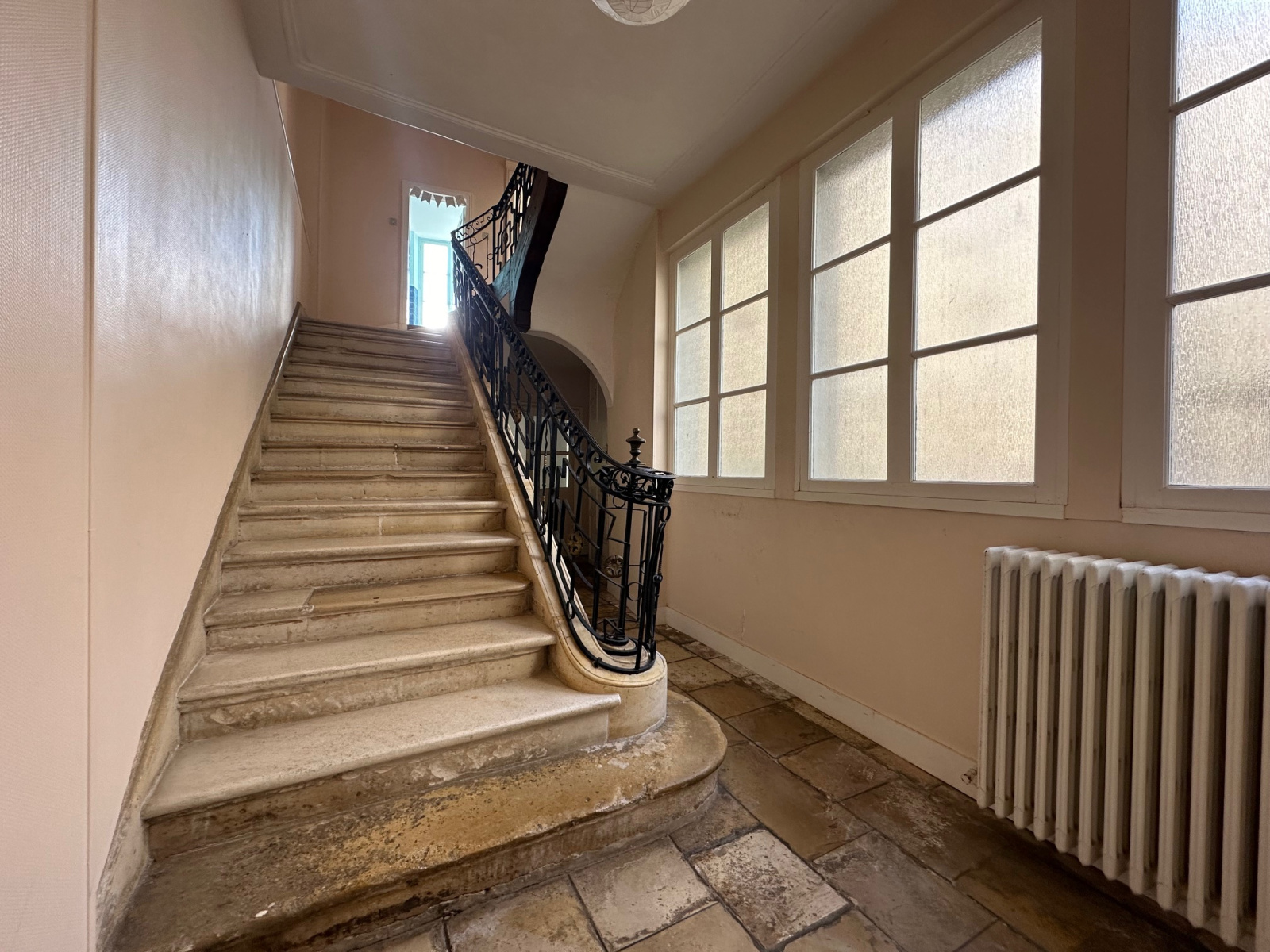 A l'abri du vis-à-vis, vous retrouverez au rez-de-jardin : une entrée de réception (environ 40m2), un magnifique séjour de plus de 60m2, une cuisine séparée, un palier avec un escalier en pierre de plus de 120 ans, wc séparés.