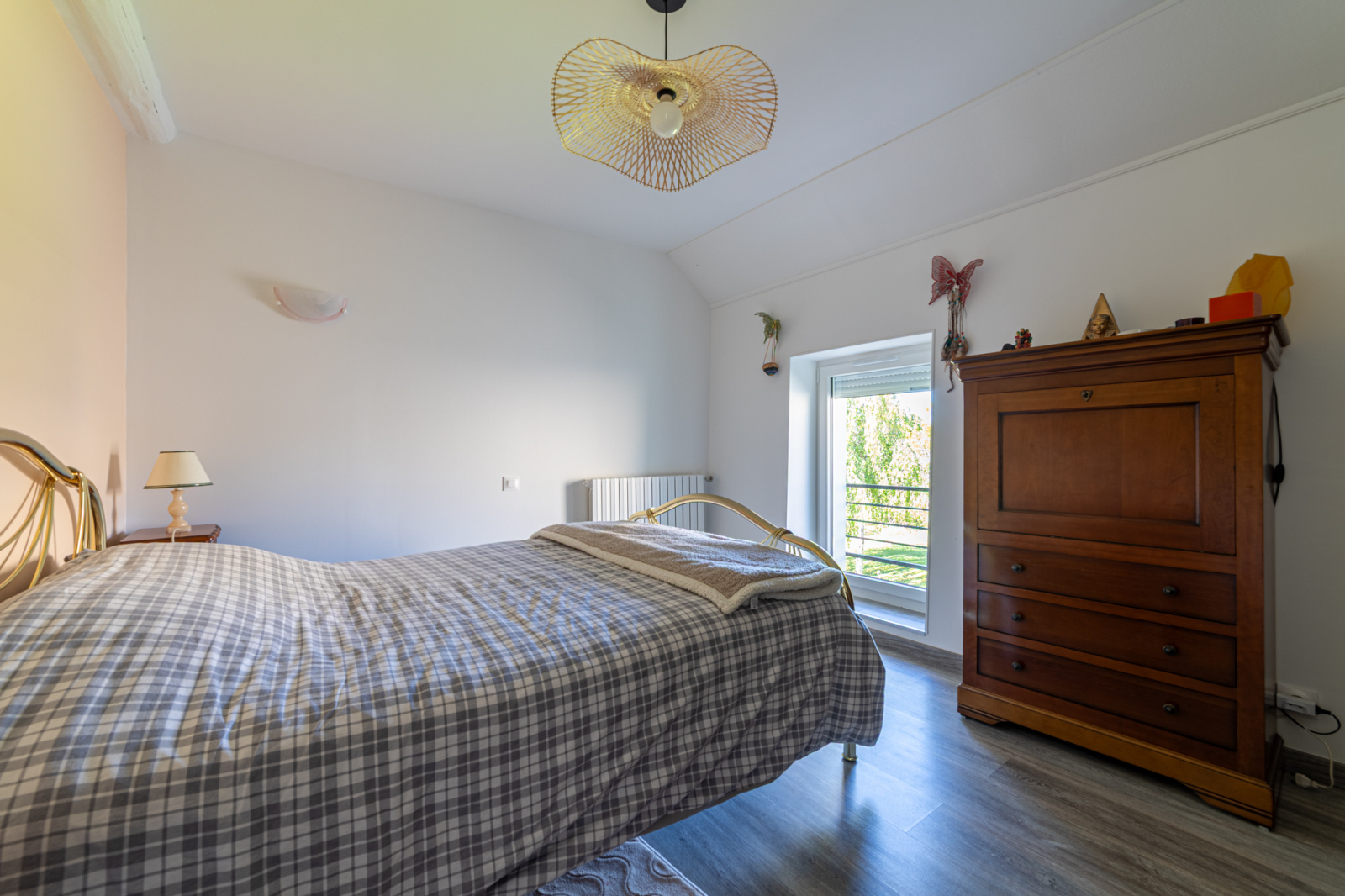 A l'étage vous trouverez un palier desservant  trois chambres, un WC et un grenier aménageable (possibilité chambre supplémentaire)