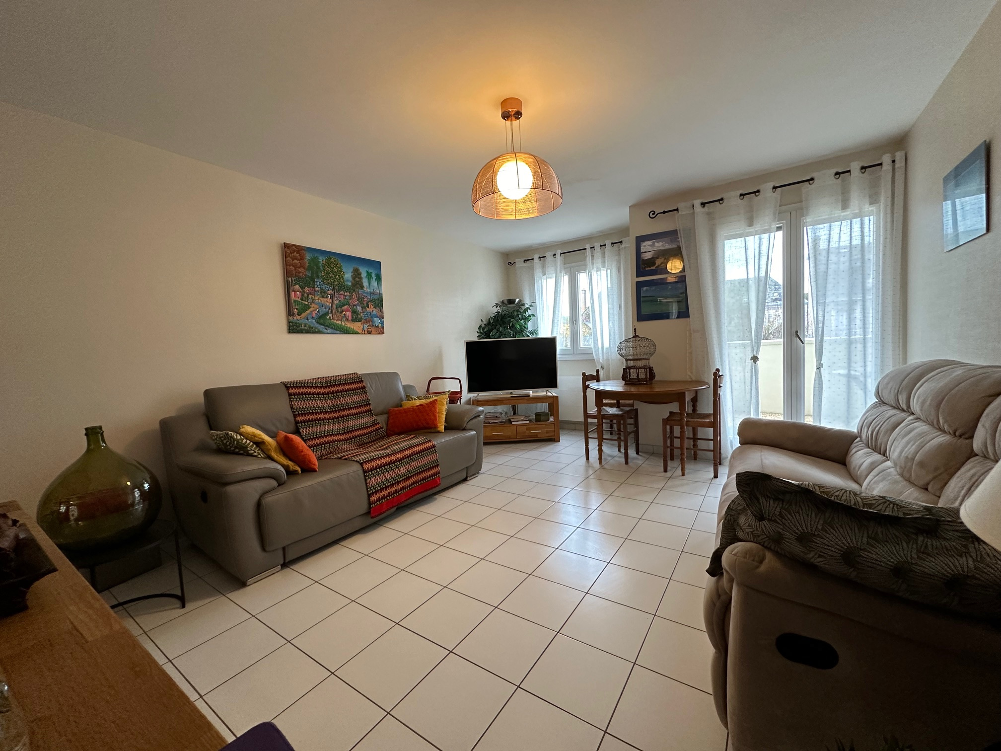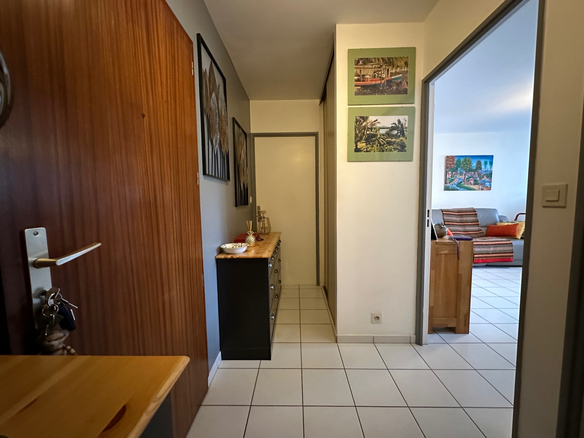 Une entrée indépendante, un vaste séjour avec placards donnant accès à un balcon d'environ 6m2, une cuisine aménagée et équipée (four, plaques, hotte, réfrigérateur), une grande chambre avec placards, une salle de bains et wc séparés.