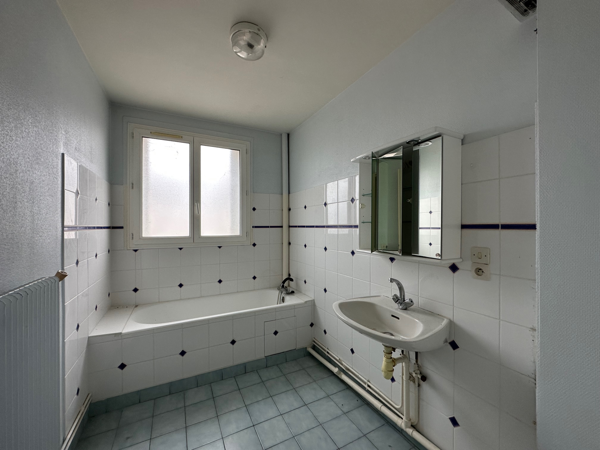 Cet appartement se compose de la manière suivante : une grande entrée de réception desservant un séjour de 19m2, une cuisine aménageé et équipée (four, plaques de cuisson), trois chambres (12m2 environ chacune), une salle de bains et wc séparés.