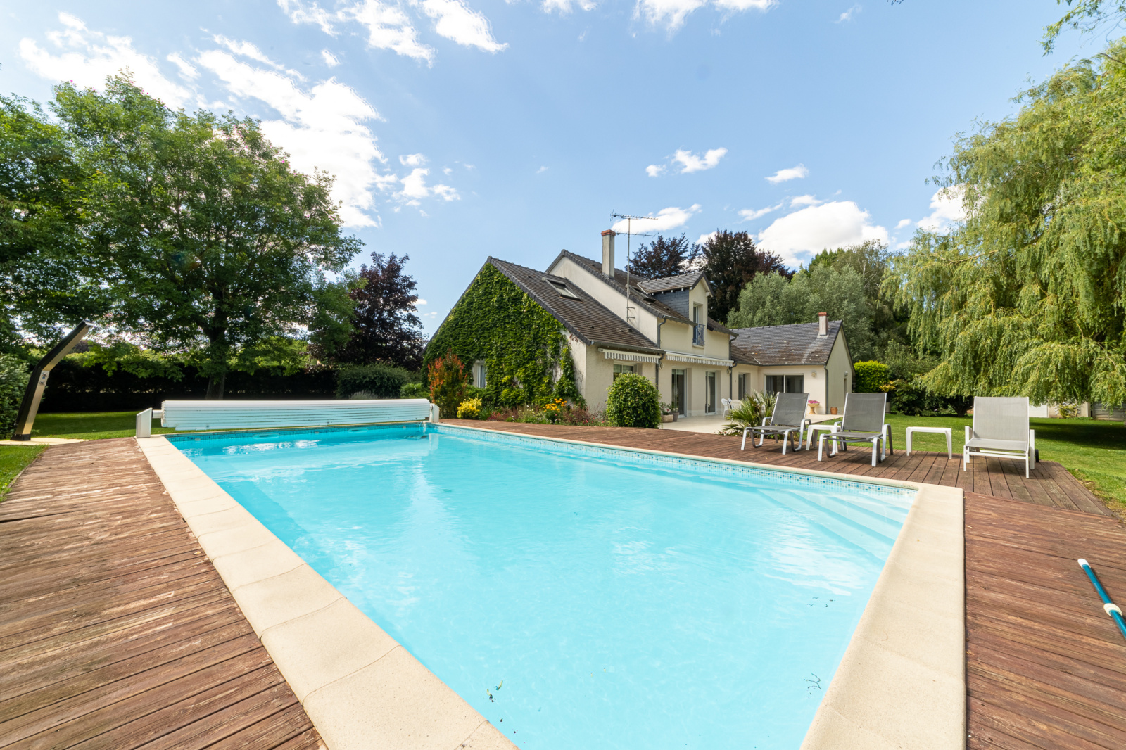 Très bel extérieur de 3012 m², clos, paysager, arboré, fleuri et eclairé. Piscine de 5x10m. Arrosage automatique.