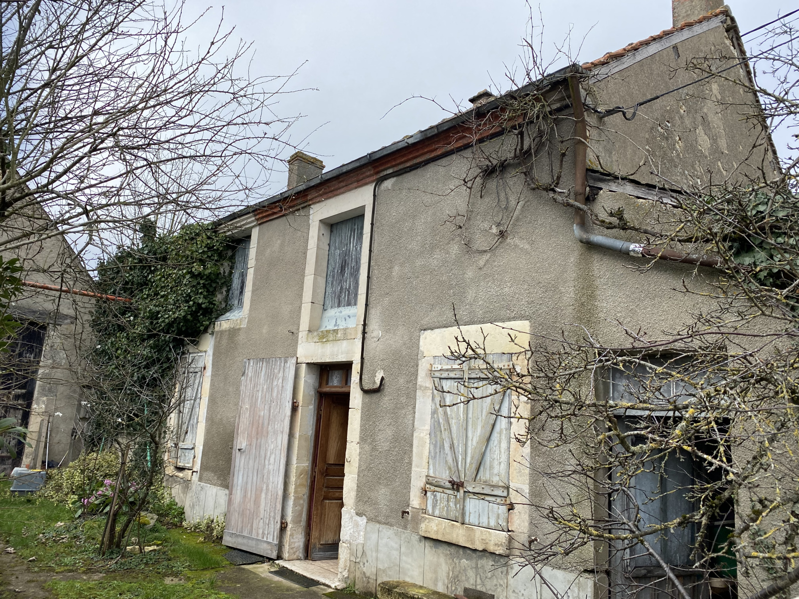 Maison d'habitation de plain-pied comprenant une entrée sur pièce de vie avec cuisine, 2 belles chambres, salle de bain, wc et comble aménageable. Les extérieurs sont composés d'une cour à l'avant avec une première dépendance, une seconde courette offrant l'accès à une dépendance avec potentiel d'aménagement supplémentaire.