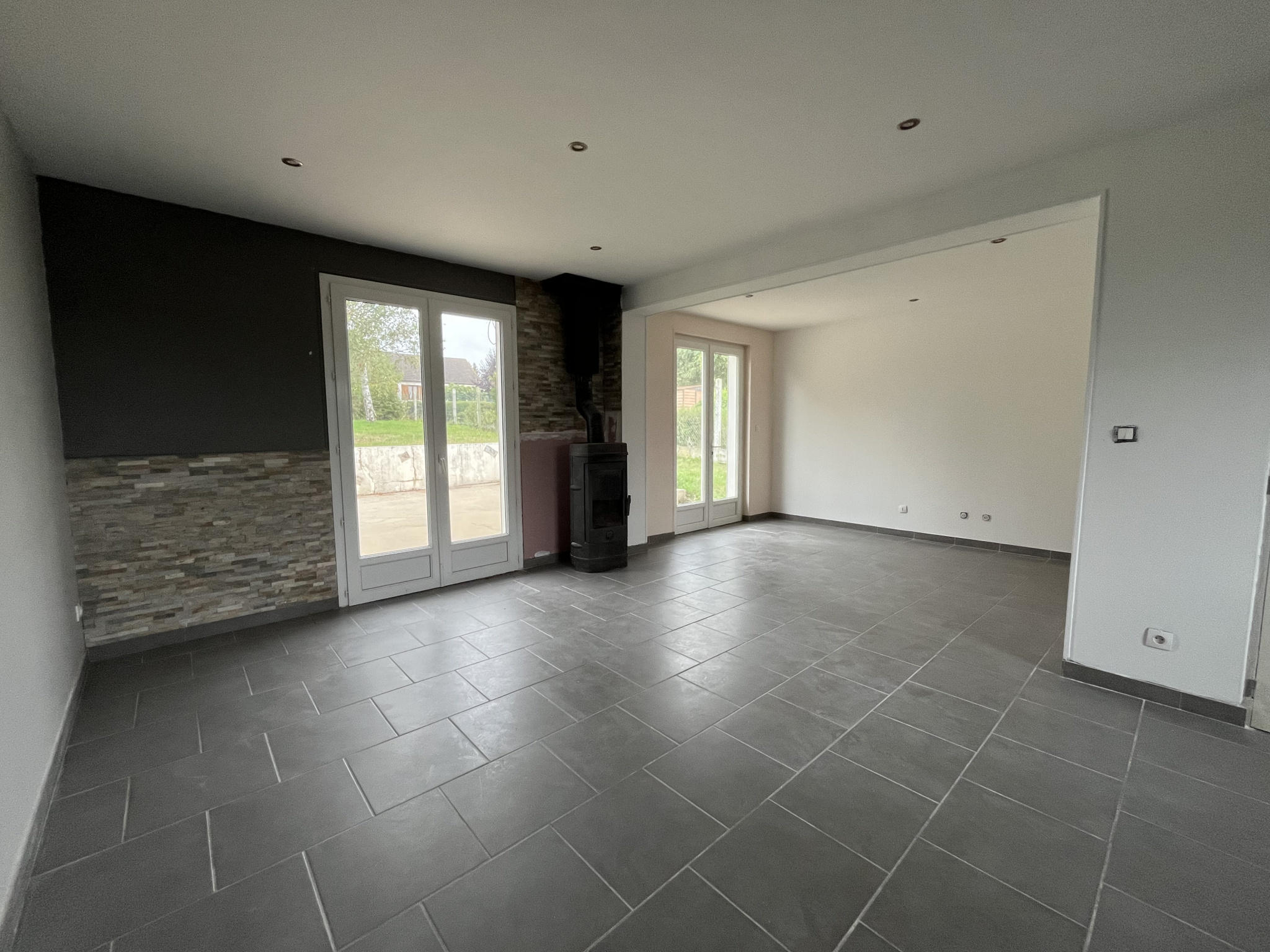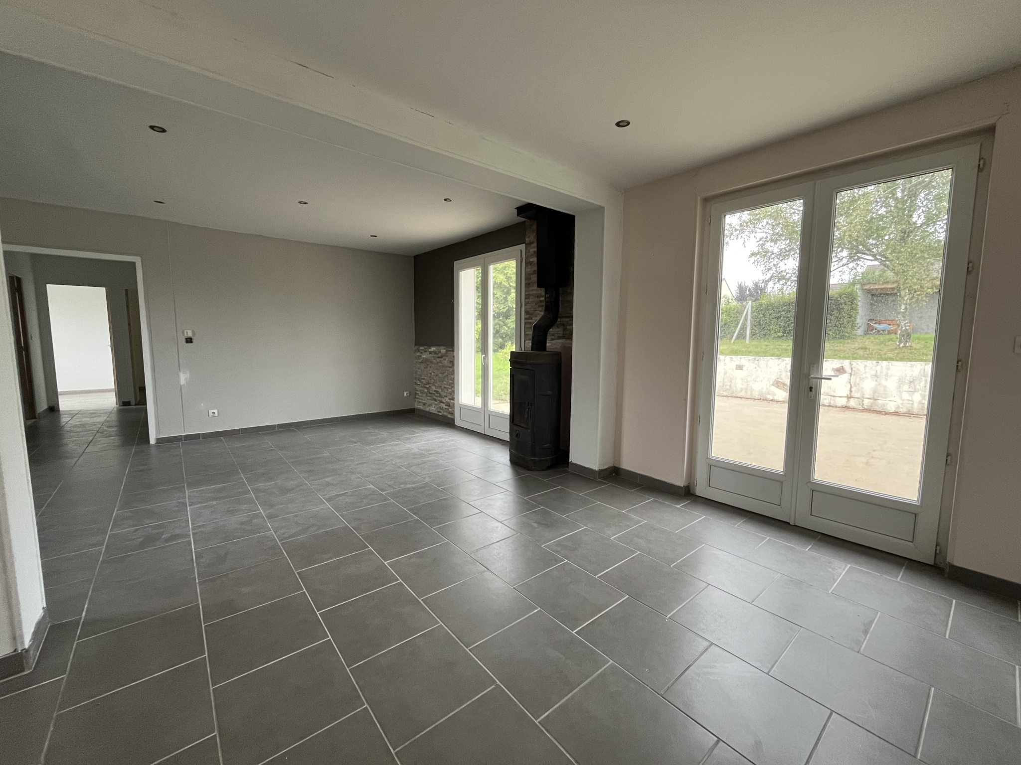 Berry Immobilier vous porpose cette maison d'habitation entièrement de plain-pied comprenant une entrée, séjour ouvert sur cuisine, terrasse et jardin, cuisine aménagée et équipée, 3 chambres, salle d'eau, wc.