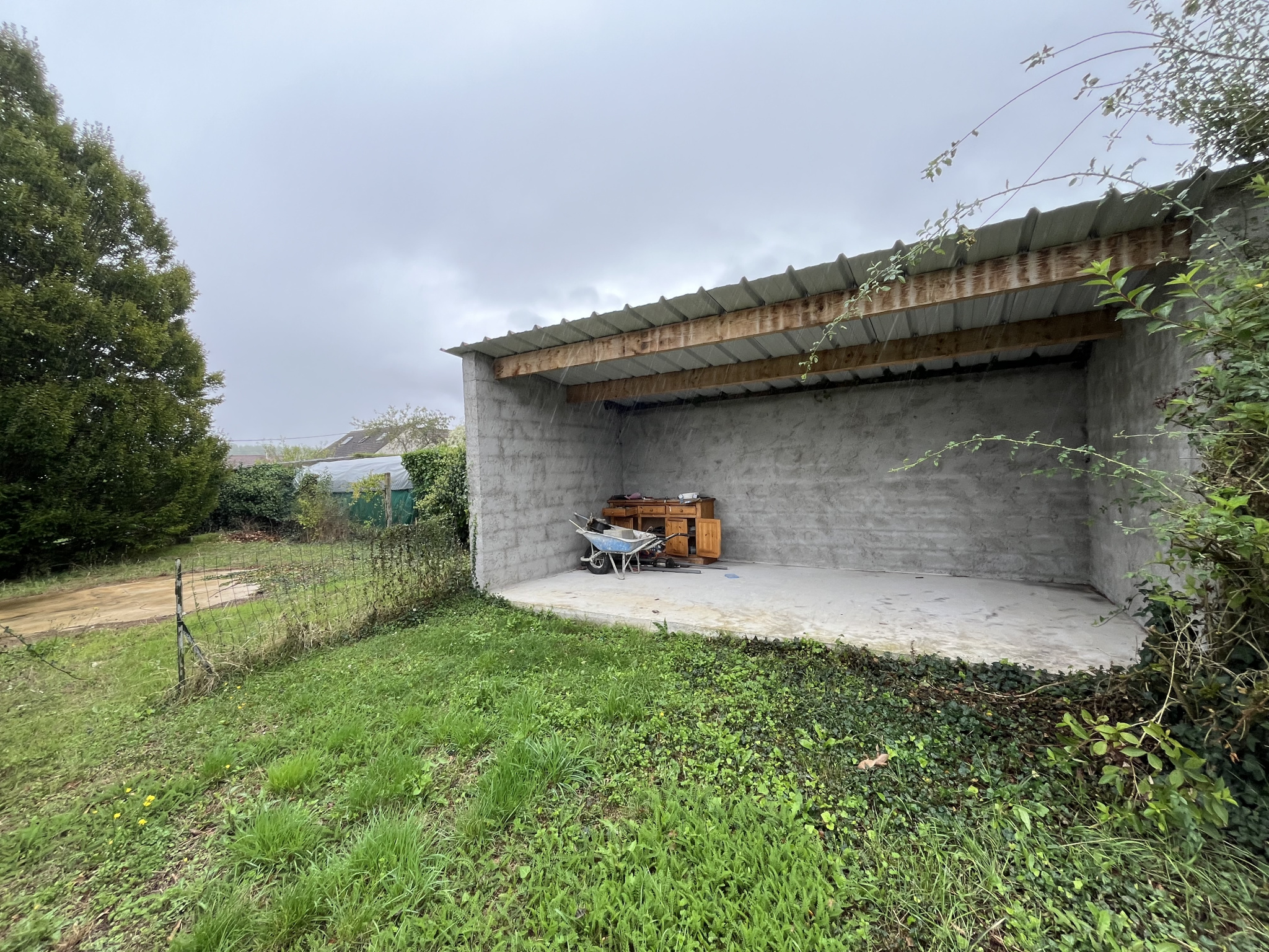 Grand jardin clos et arboré, avec appentis.