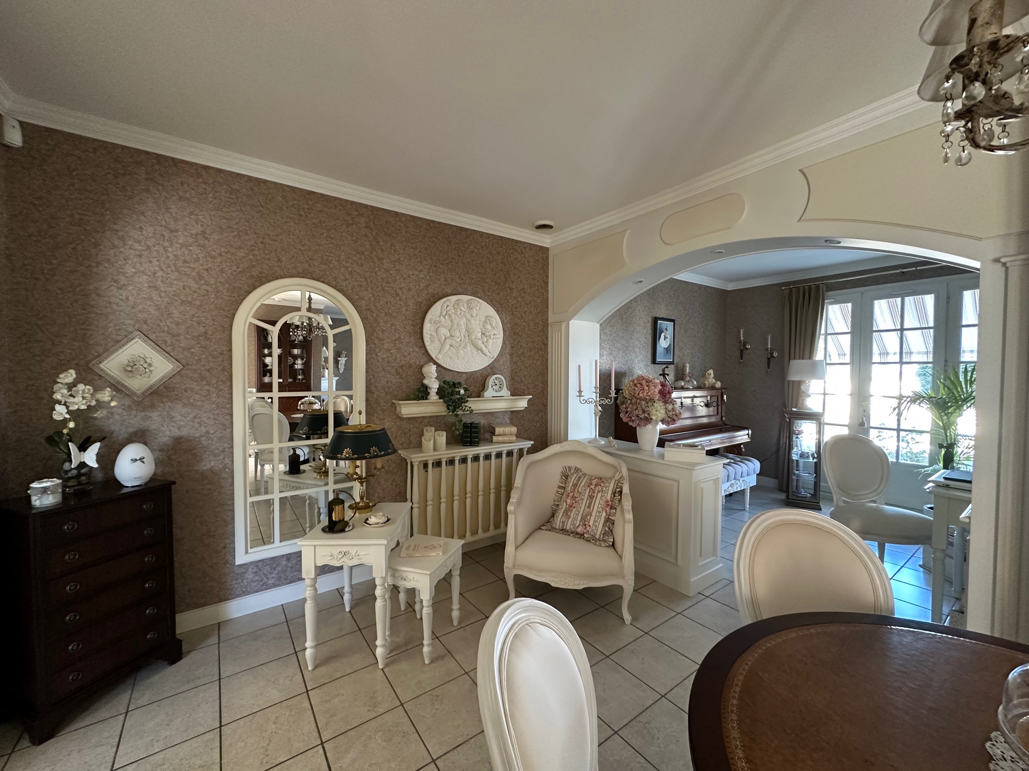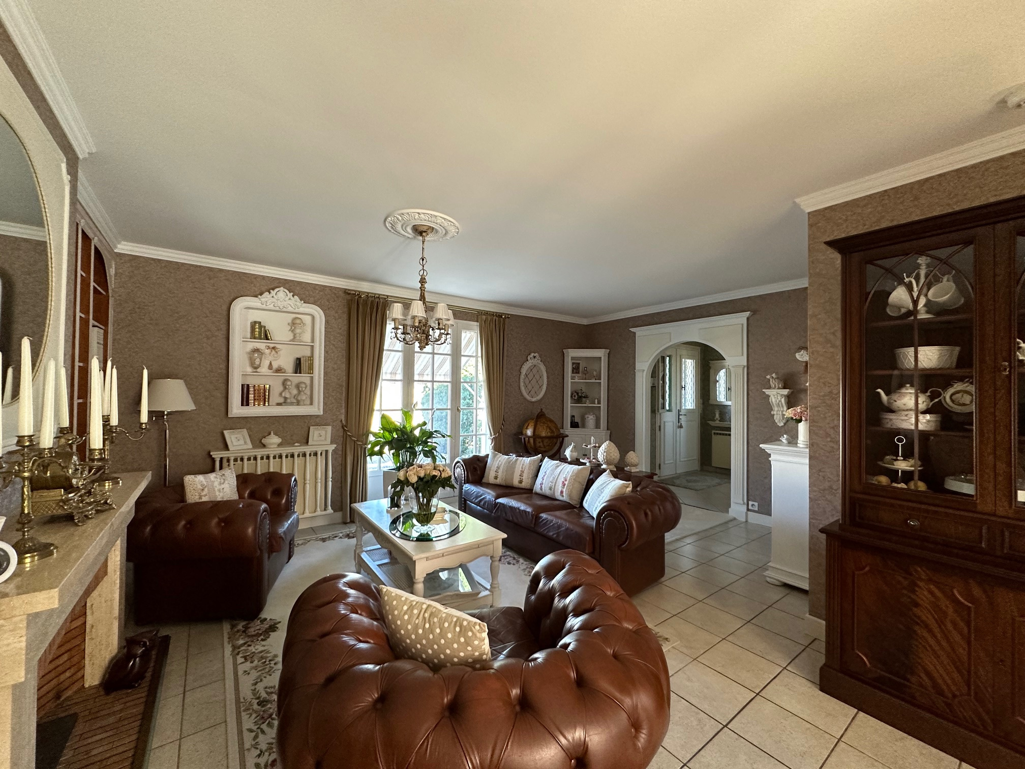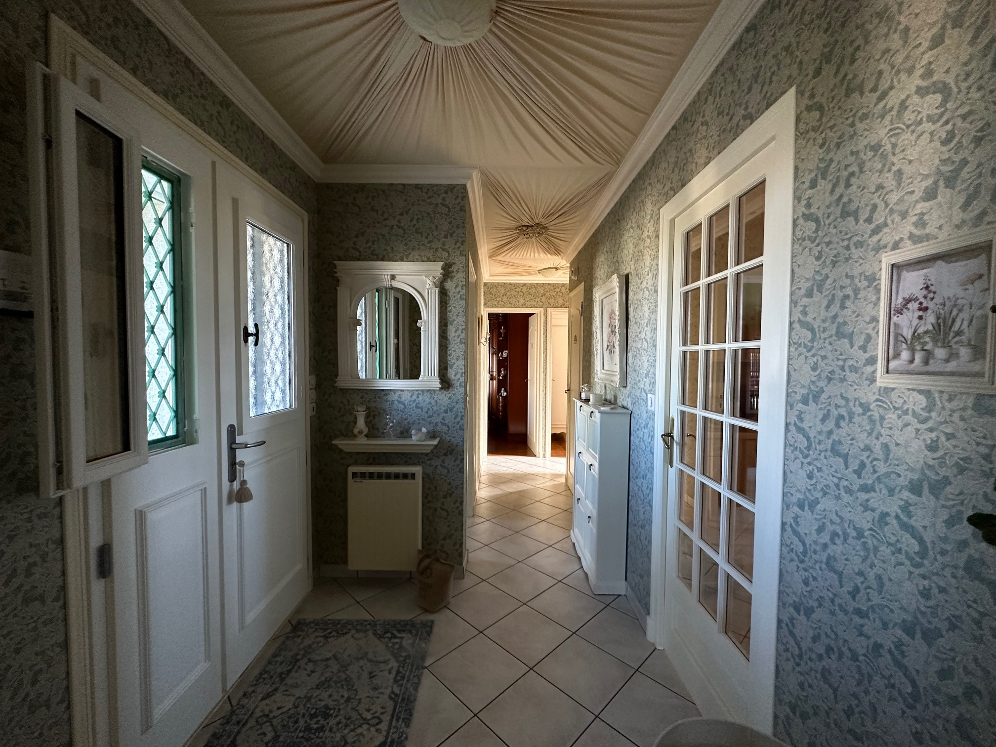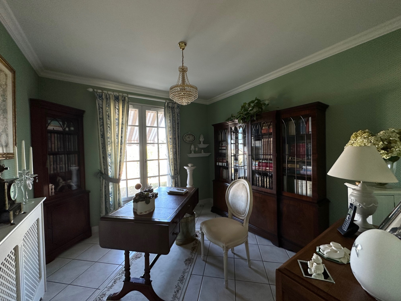une entrée indépendante, un vaste salon-séjour d'environ 40m2, un espace bibliothèque, une extension d'environ 18m2 avec un insert bois, une cuisine aménagée et équipée, trois belles chambres, une salle d'eau et wc séparés.
