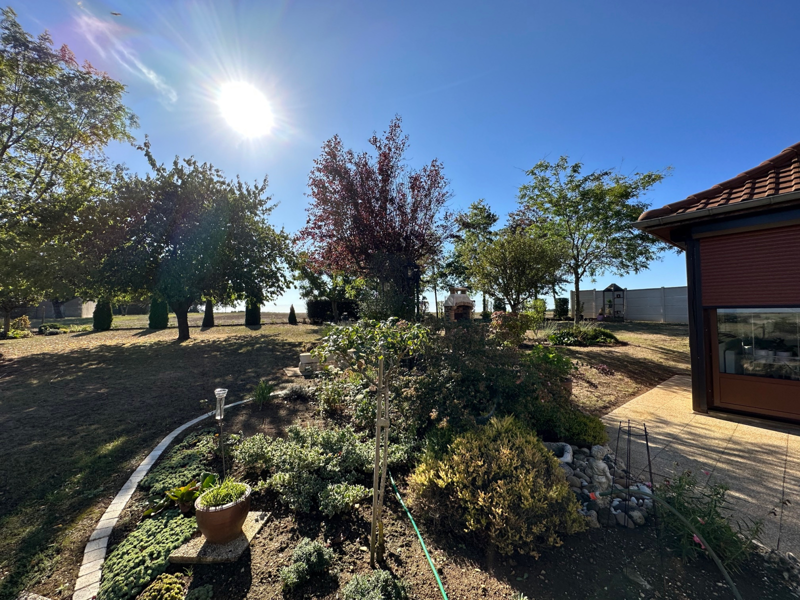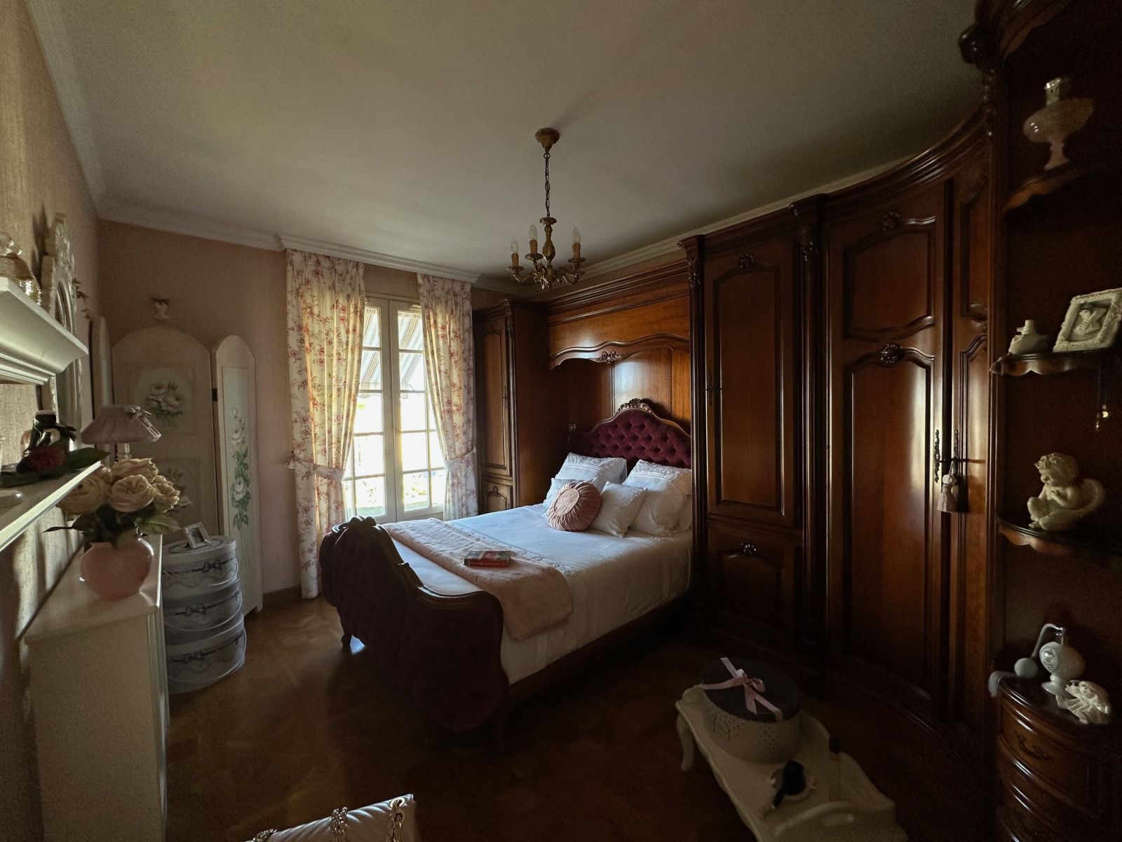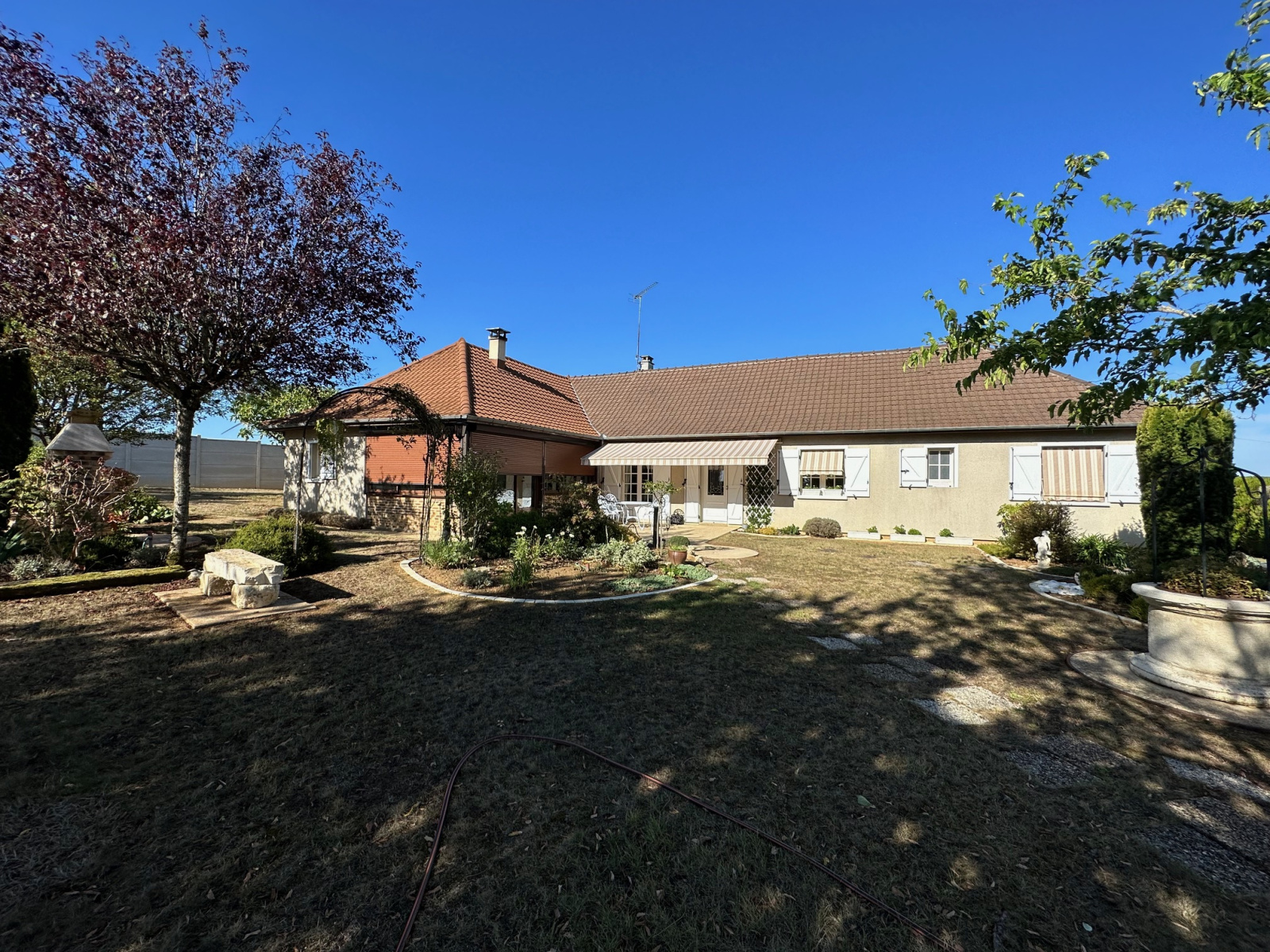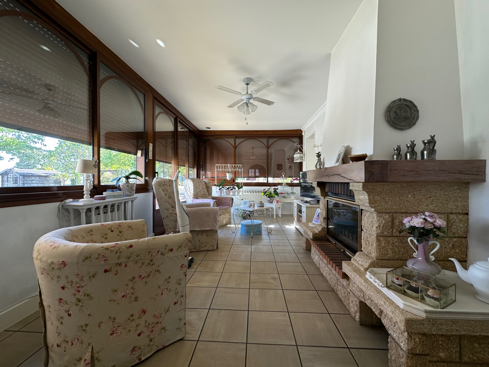 une entrée indépendante, un vaste salon-séjour d'environ 40m2, un espace bibliothèque, une extension d'environ 18m2 avec un insert bois, une cuisine aménagée et équipée, trois belles chambres, une salle d'eau et wc séparés.