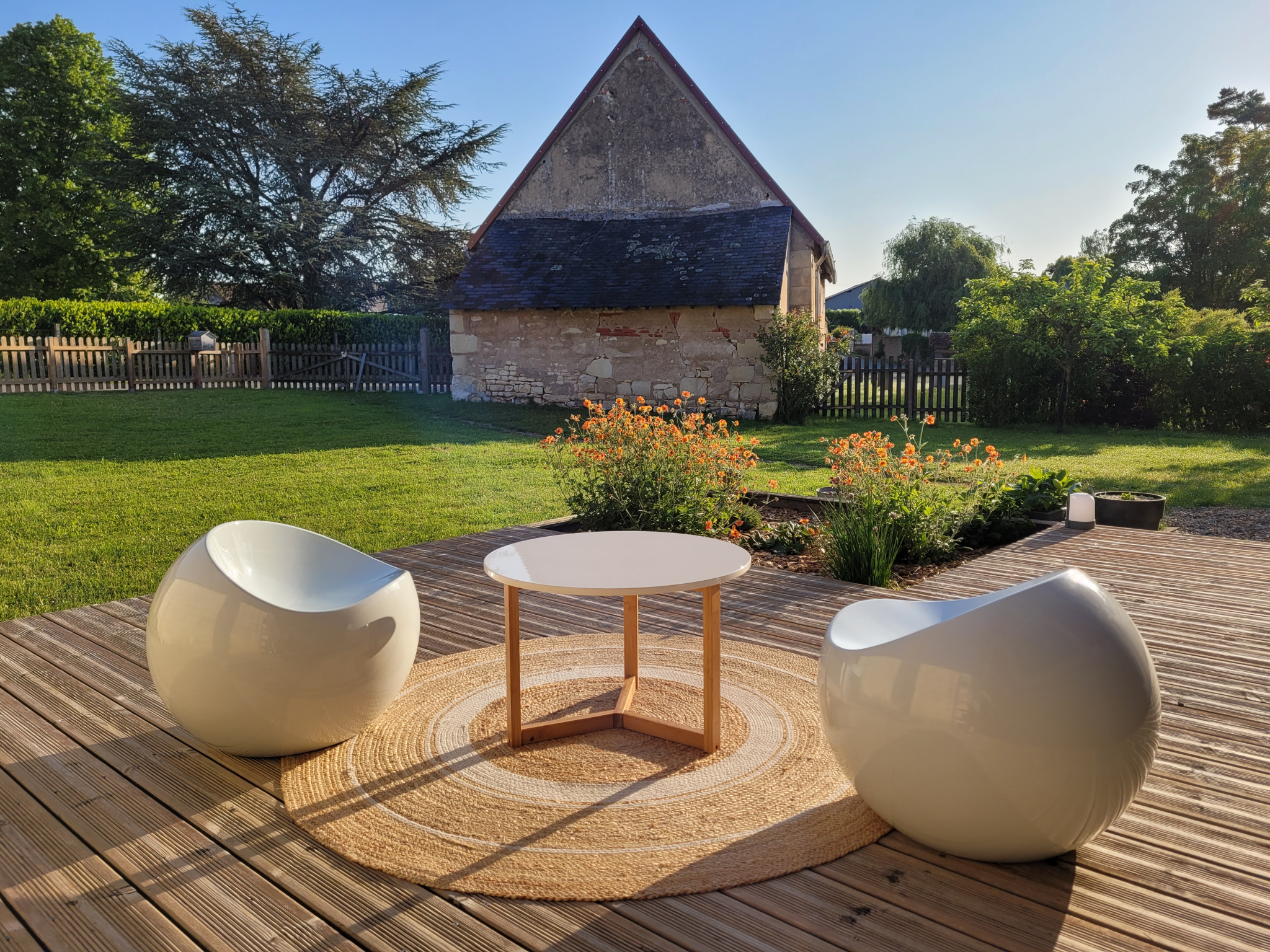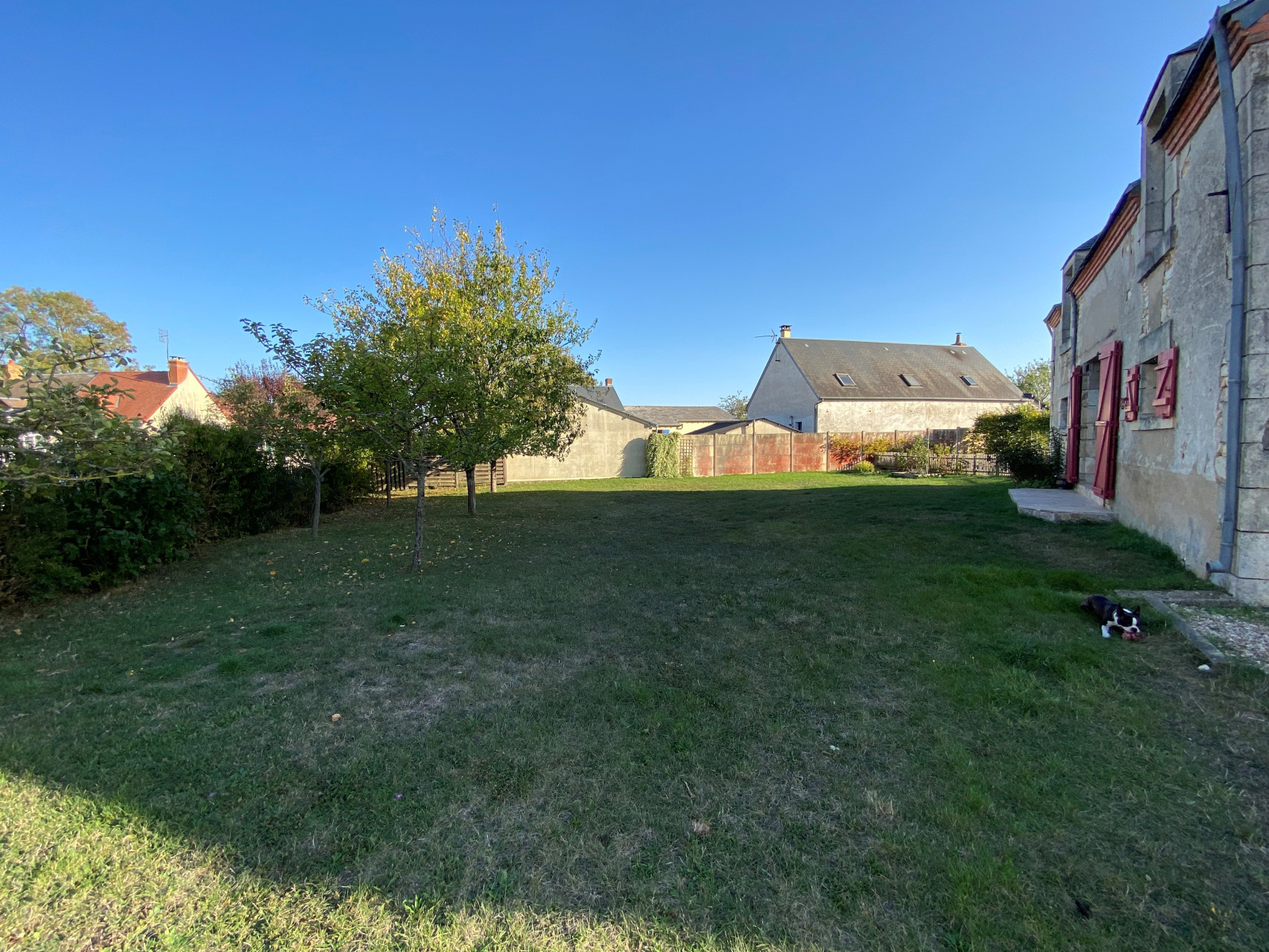 Jardin clos et arboré sur une parcelle de 1064 m² avec garage.