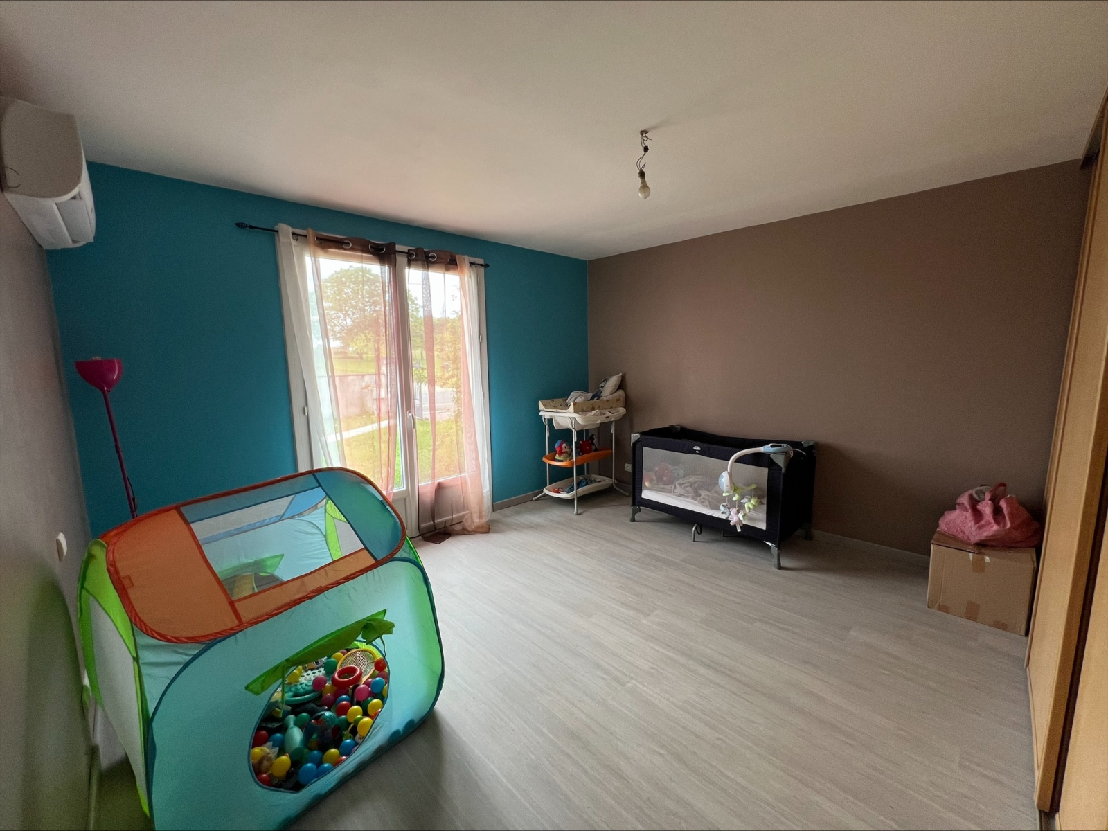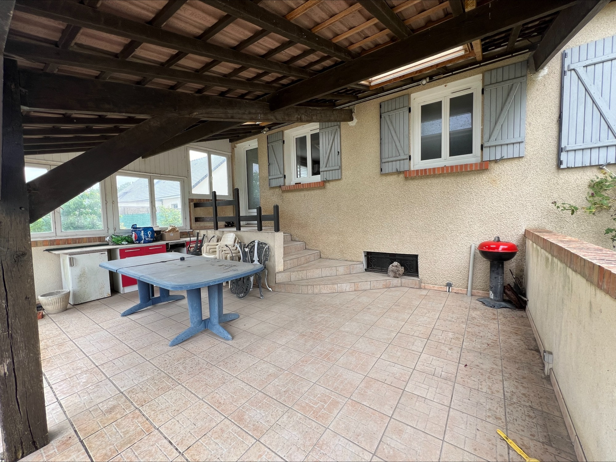 - Extérieurs :** Une grande terrasse abritée de 30 m², parfaite pour profiter de l’extérieur en toute saison. Vous y trouverez également un garage extérieur, pratique pour stationner votre véhicule ou pour utiliser comme espace de bricolage.