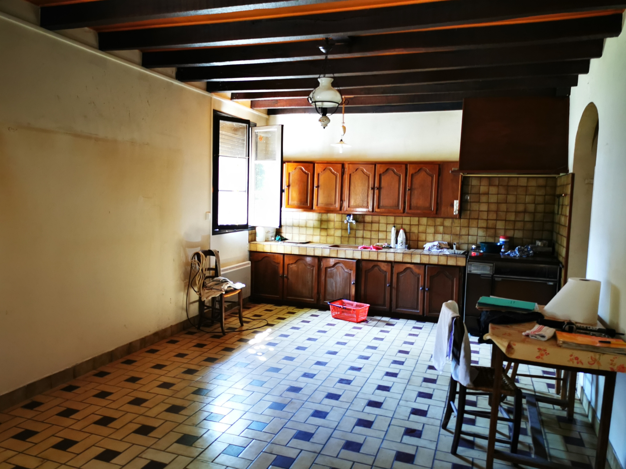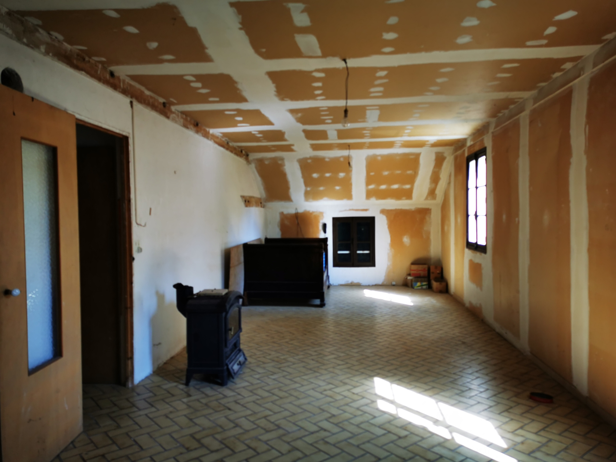 Construite sur une ancienne vacherie, cette maison se compose d'un RDC comprenant : entrée, grand séjour avec cheminée, cuisine, cellier, chambre, salle d'eau, wc, rangements, atelier, chaufferie, veranda.